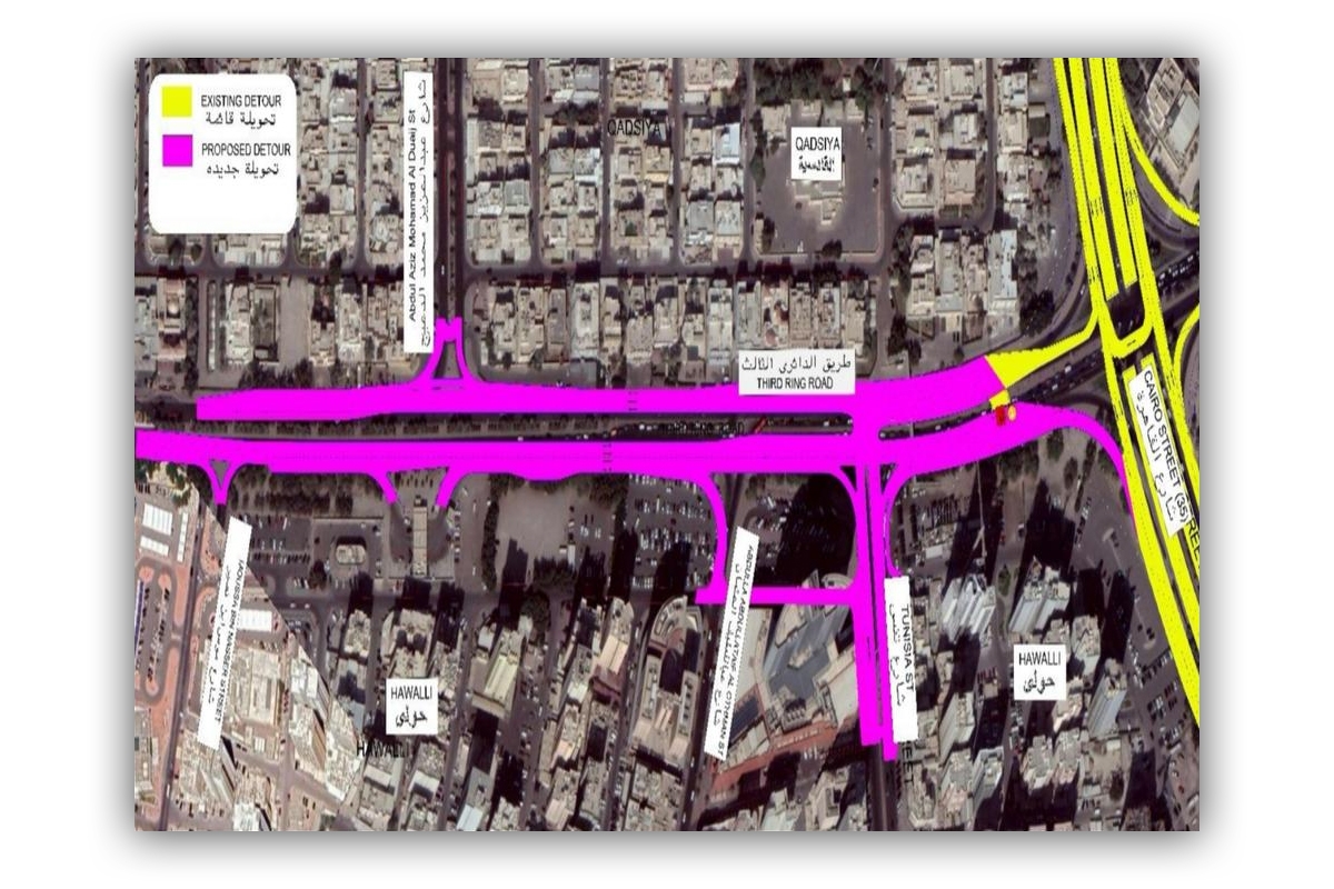 أعلنت هيئة الطرق والنقل البري بالتعاون مع الإدارة العامة للمرور عن قيامها بإغلاق مؤقت لمدة 24 ساعة لمدخل الدائري الثالث من شارع القاهرة باتجاه «طريق 30» مع مدخل ومخرج الشعب، وذلك لاستكمال أعمال طبقة الأسفلت السطحية، وذلك من فجر الجمعة وحتى فجر السبت المقبلين.