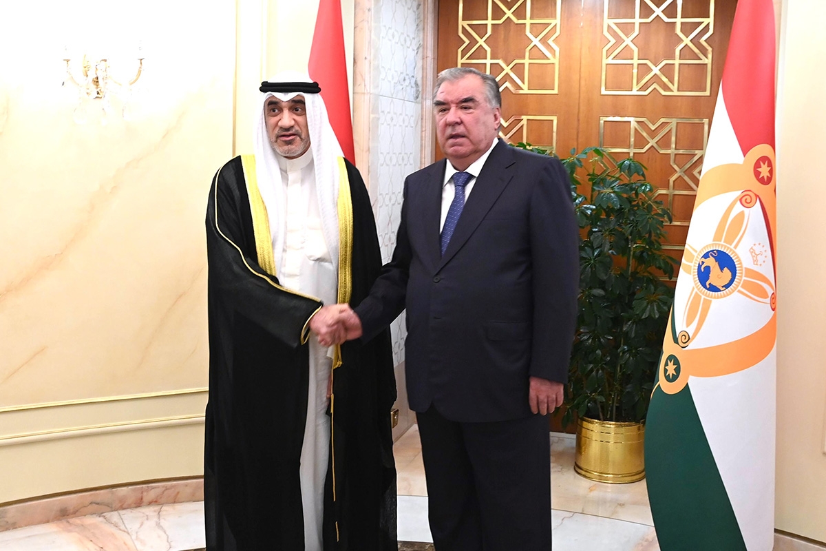 استقبل رئيس جمهورية طاجيكستان إمام علي رحمان مساء اليوم رئيس مجلس الوزراء بالإنابة ووزير الدفاع ووزير الداخلية الشيخ فهد يوسف سعود الصباح وذلك بمقر إقامته بقصر بيان.